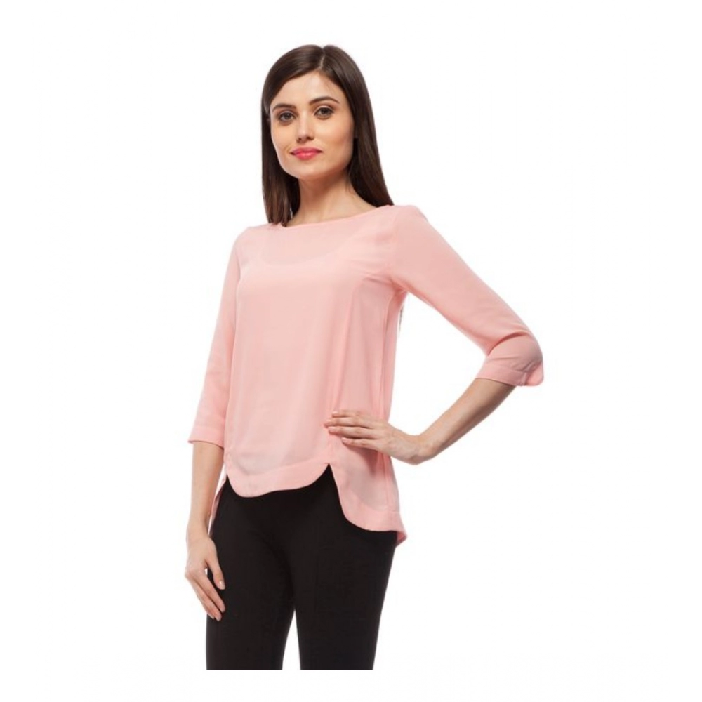 Generic Women’s Polyester Solid 3-4th Sleeves Regular Top (Peach)