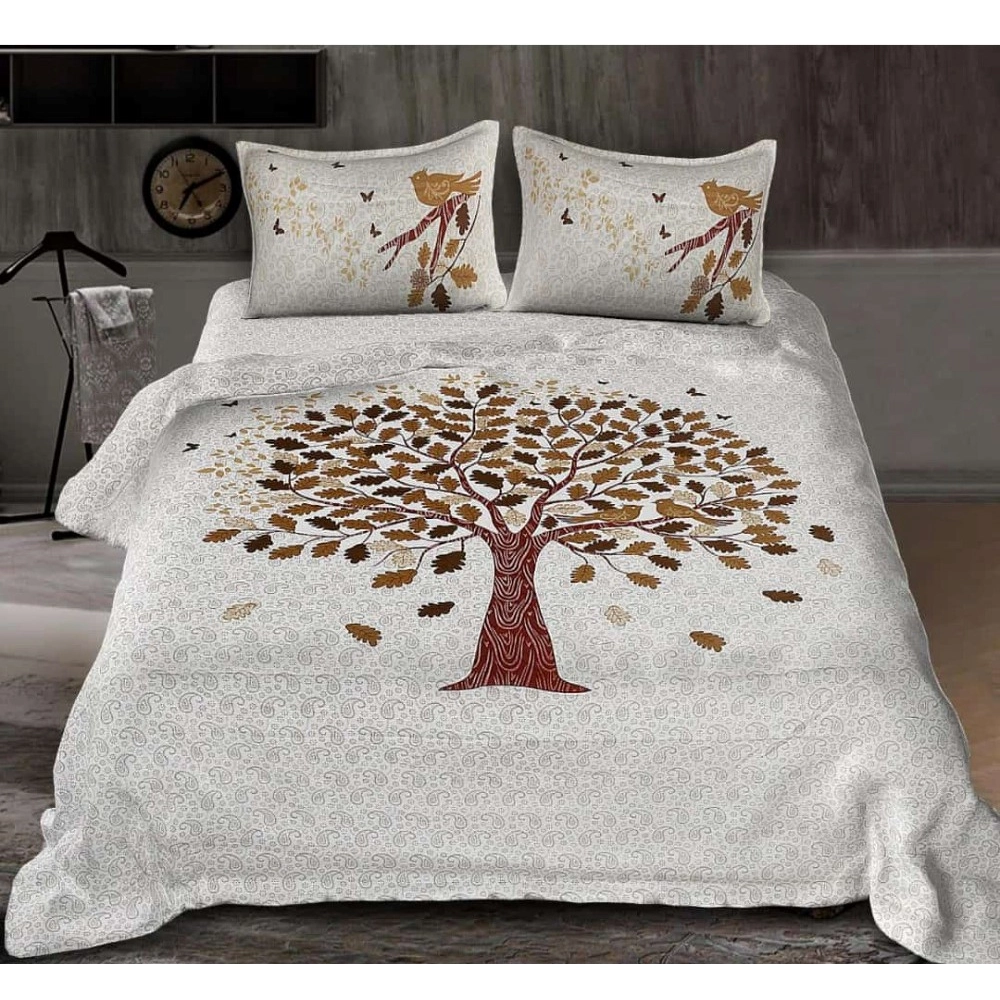 Generic Cotton Printed Queen Size Bedsheet With 2 Pillow Covers (White, 90×100 Inch)