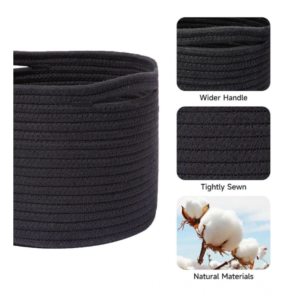 Generic Cotton Round Small Storage Basket 9×7 Inch Pack of 1 (Black)