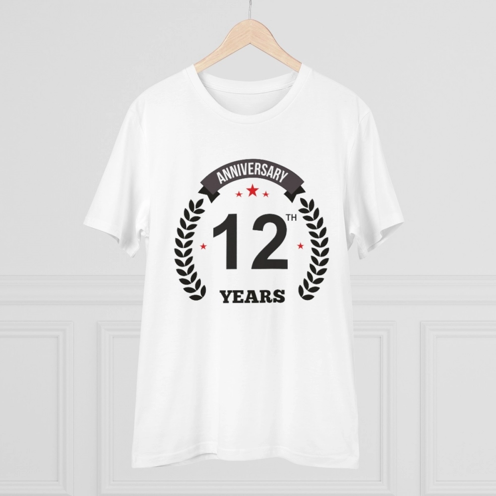 Generic Men’s PC Cotton 12th Anniversary Printed T Shirt (Color: White, Thread Count: 180GSM)