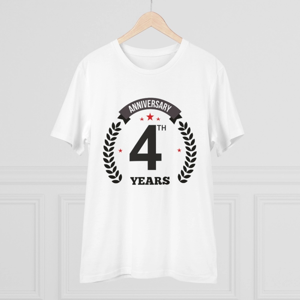 Generic Men’s PC Cotton 4th Anniversary Printed T Shirt (Color: White, Thread Count: 180GSM)