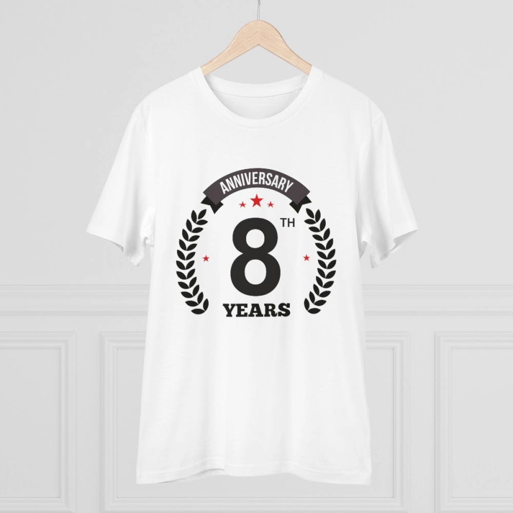 Generic Men’s PC Cotton 8th Anniversary Printed T Shirt (Color: White, Thread Count: 180GSM)