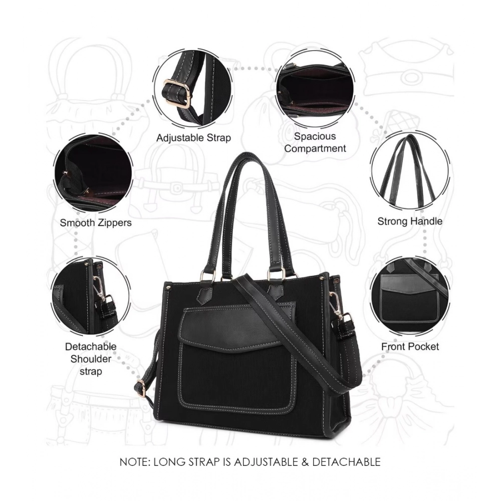 Generic Women’s Canvas Medium Top handle Satchel Zipper Handbag (Black)