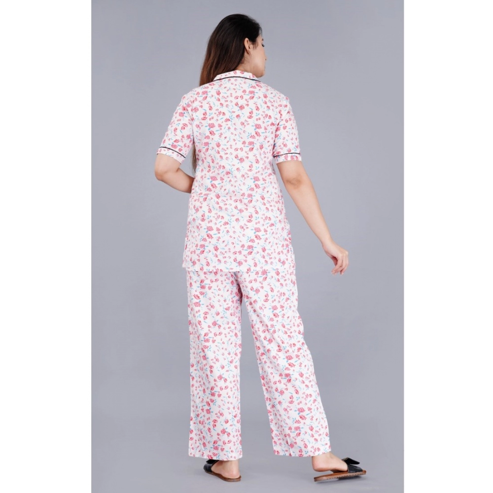 Generic Women’s Casual Half Sleeve Printed Viscose Rayon Shirt With Pyjama Pant Night Suit Set (Baby Pink)