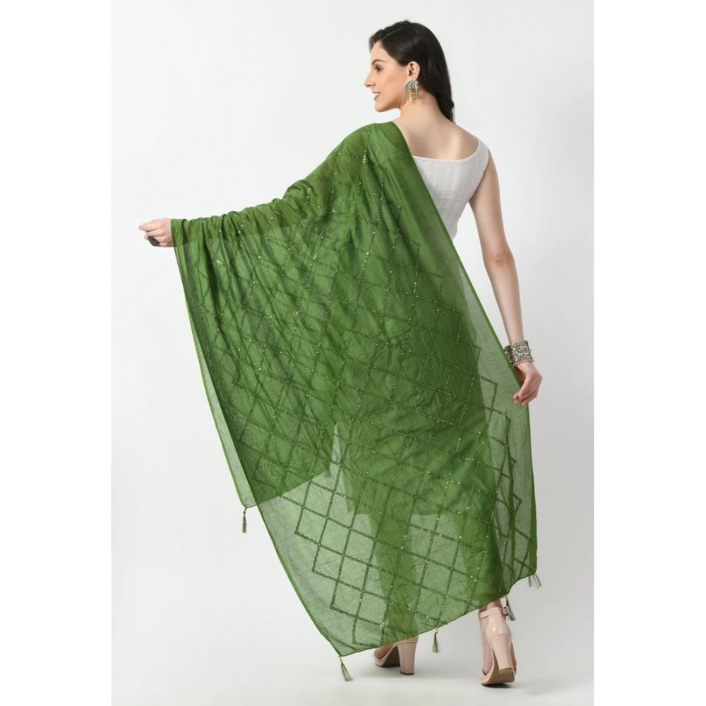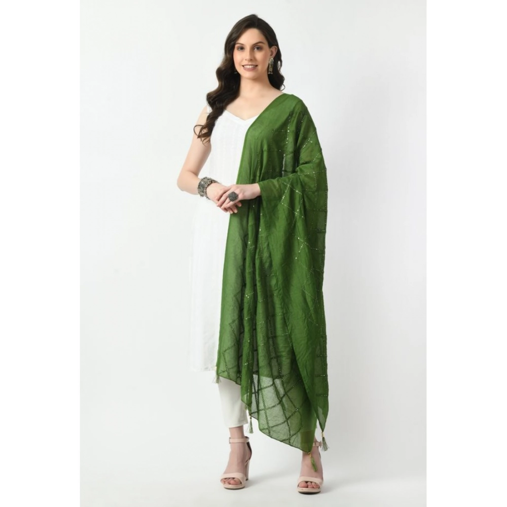 Generic Women’s Chanderi Self Design Dupatta (Mehandi, Length: Free Size)