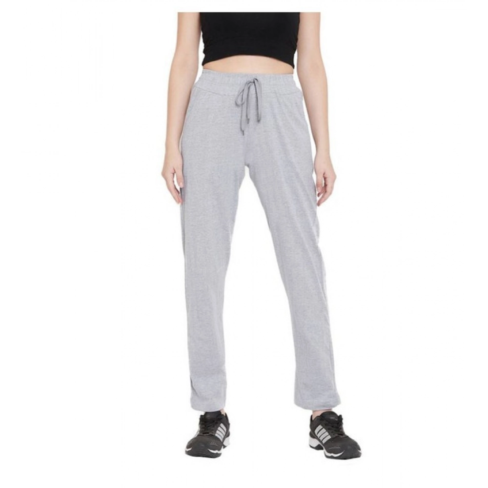Generic Women’s Cotton Solid Elasticated Track Pants (Light Grey)