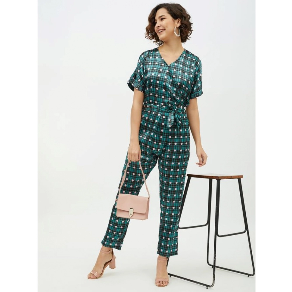 Generic Women’s Polyester Polka Short Sleeve Jumpsuit (Green)