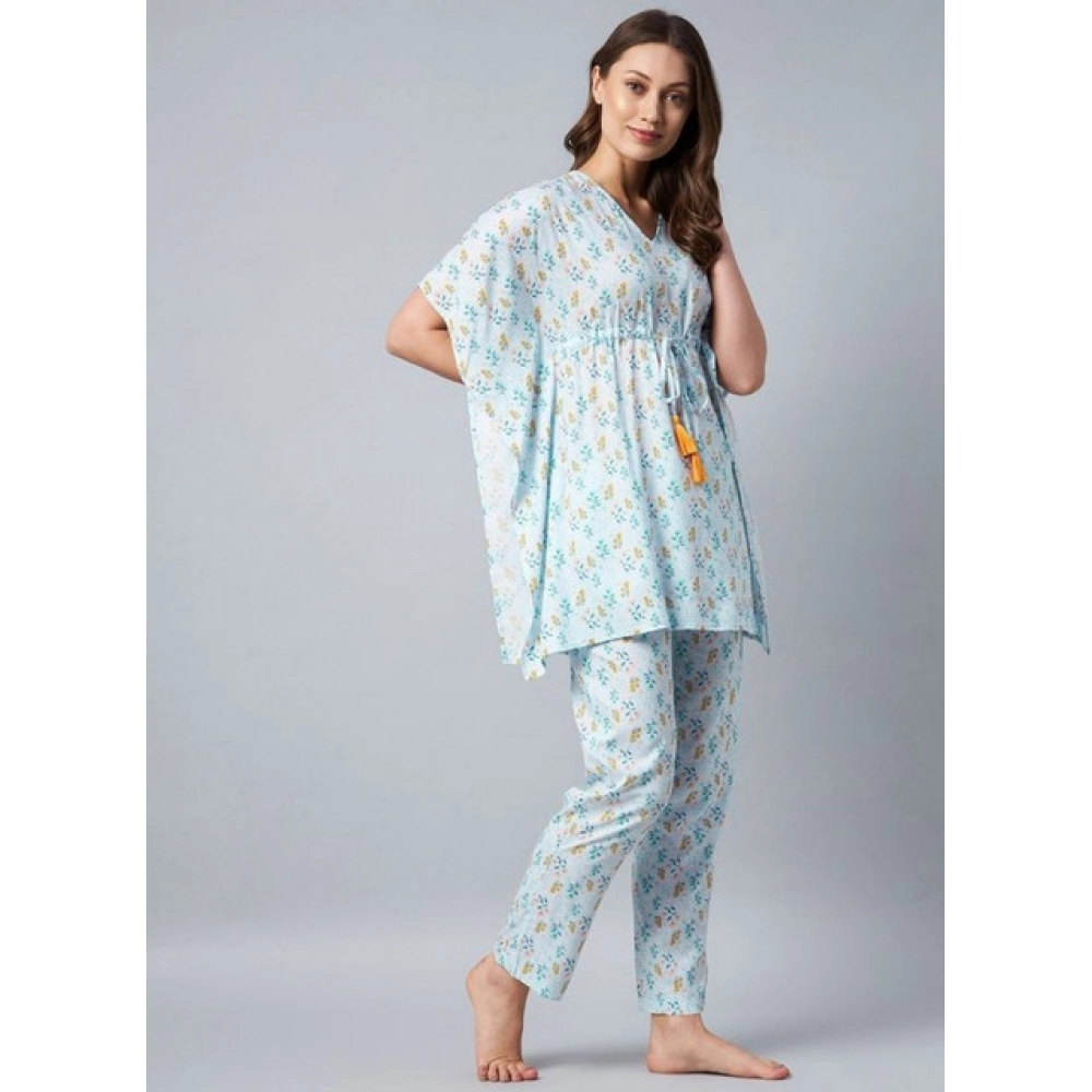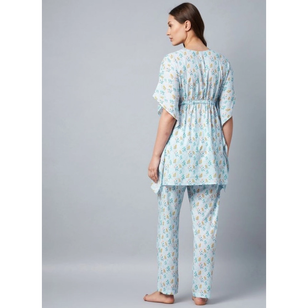 Generic Women’s Rayon Floral Kaftan Sleeve Kaftan Sets (Light Blue)