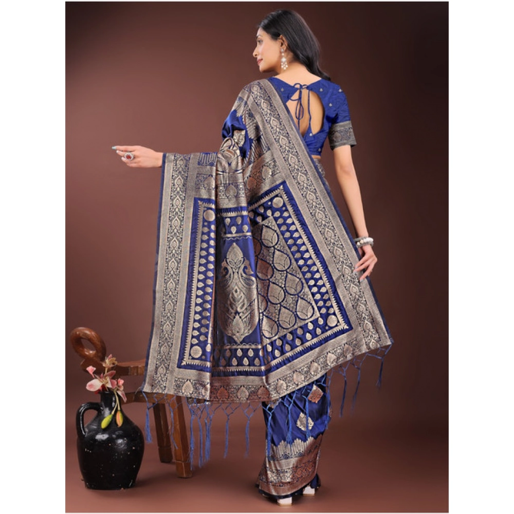 Generic Women’s Silk Printed Saree With Unstitched Blouse 5.5Mtr (Navy Blue)